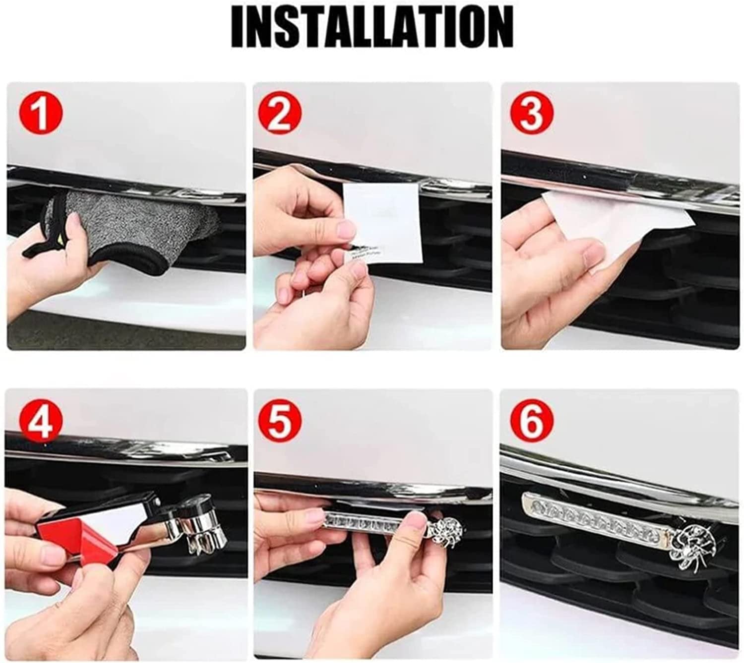 Egyszerű telepítés: A telepítéshez nincs szükség vezetékek bekötésére, az önragasztó módszert alkalmazza. Először meg kell tisztítani és megszárítani az elülső középső hálót. Ezután húzza le a tartó hátoldalán lévő fóliát, ragassza a középső hálóra, és nyomja meg egy ideig. Végül a tartó 180 fokkal állítható, így igényei szerint beállíthatja.