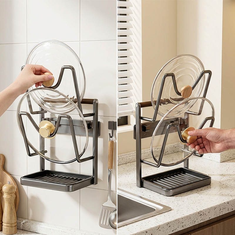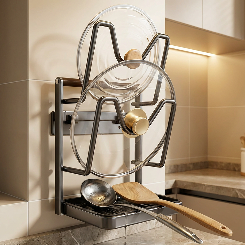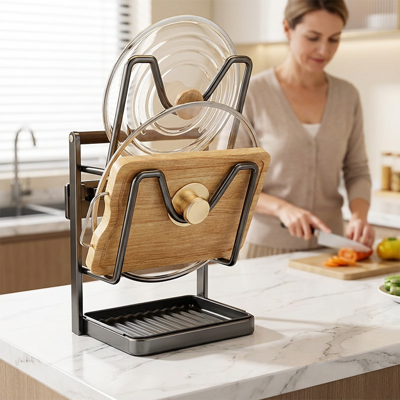TÖBB SZINTŰ SZERVEZÉS: Rendezett tárolást biztosít a különböző edényfedőknek és vágódeszkáknak, így azonnal rendet teremt a konyhában, és megkönnyíti a szükséges eszközök megtalálását, amikor szükség van rájuk.