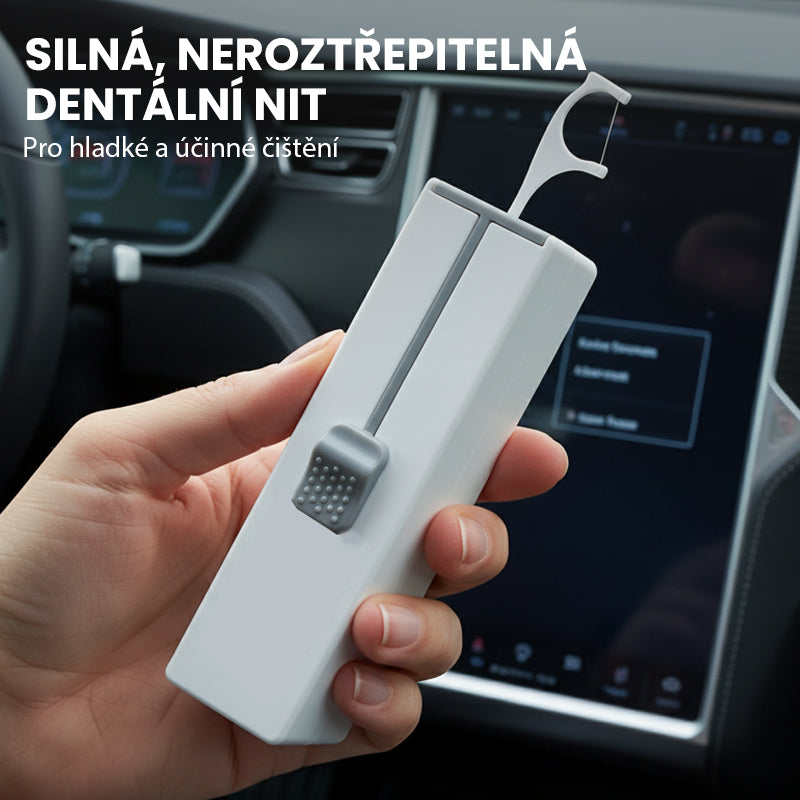 EGY ÉRINTÉSES ADAGOLÁS – A tartóval egyszerű mozdulattal könnyedén előveheti a friss fogselymet. Ez a higiénikus, érintésmentes kialakítás azt jelenti, hogy utazás közben is könnyedén, gond nélkül és rendetlenség nélkül ápolhatja szájhigiéniáját.