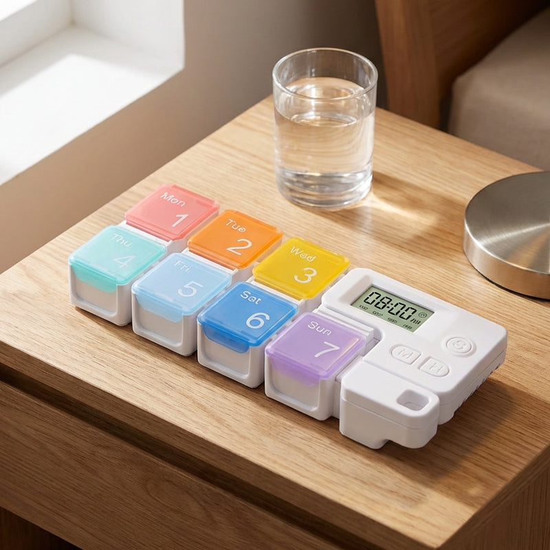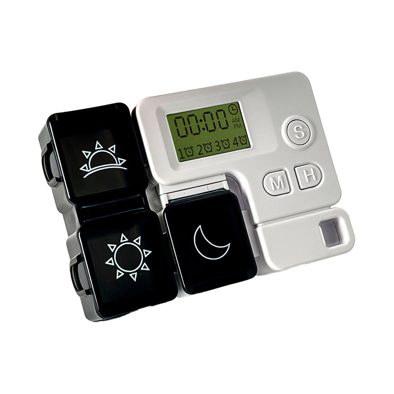 INTELLIGENS IDŐZÍTETT EMLÉKEZTETŐK – Az intelligens riasztórendszernek köszönhetően soha többé nem fogja kihagyni a gyógyszer szedését. Naponta legfeljebb négy riasztást állíthat be hangjelzéssel és háttérvilágítással, így biztosítva, hogy minden nap időben szedje a gyógyszert.