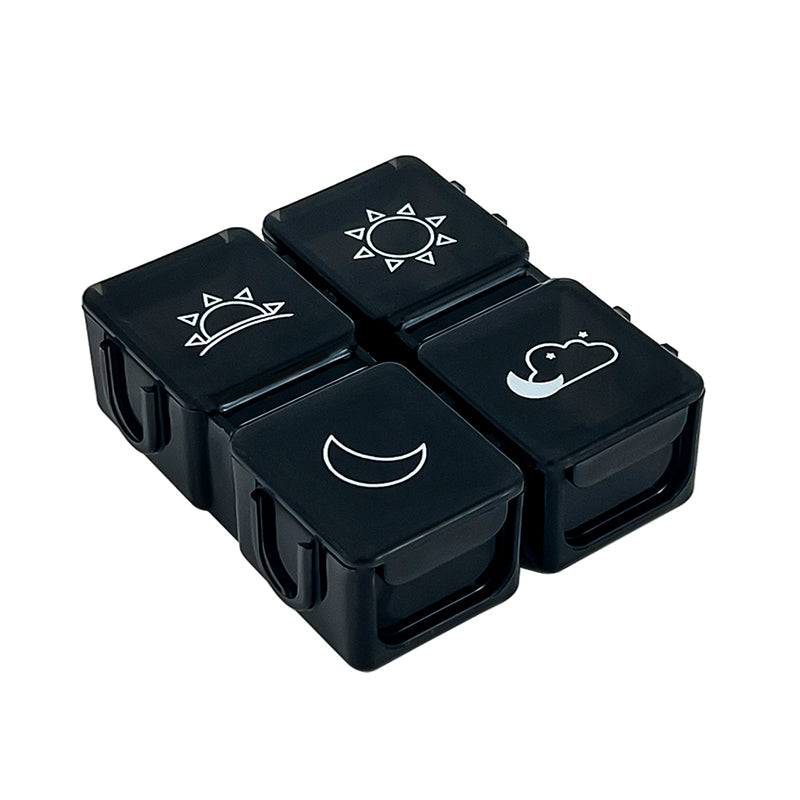 MODULÁRIS KIALAKÍTÁS - A tablettáit rendezett módon tárolhatja a független, levehető modulokkal. Ez a rugalmas kialakítás lehetővé teszi, hogy csak egy napra elegendő gyógyszert vigyen magával, így tökéletes mindennapi használatra és utazáshoz egyaránt.